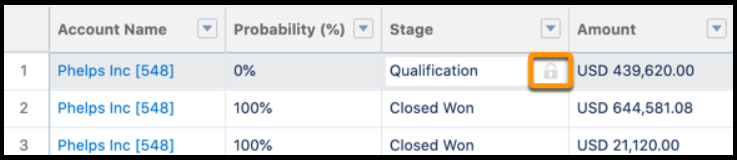 - andere Regeln bzw. Einschränkungen nicht zulassen, dass sie den Datensatz bearbeiten, z. B wenn die Opportunity geschlossen ist.
