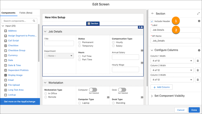 Nun können auch Abschnittsüberschriften in Flow-Bildschirmen erstellt und angezeigt werden. Eine visuelle Hierachie, die Benutzer zu den wichtigen Elementen führt. Abschnitte mit Kopfzeile sind reduzierbar und standardmäßig geöffnet.
