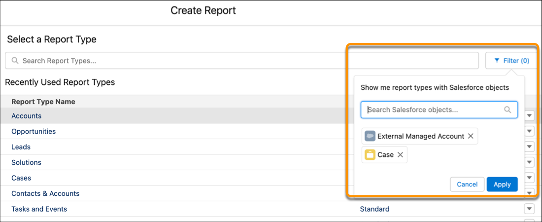 Berichte basierend auf ausgewählten Salesforce-Objekten