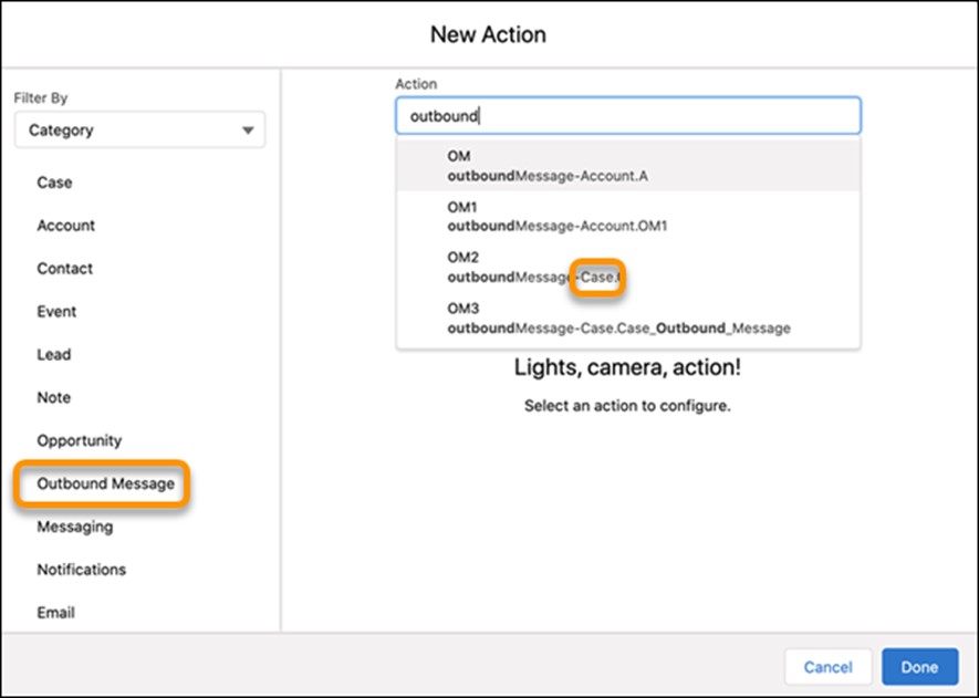 Zu guter Letzt sind jetzt auch Outbound Messages als zentrale Aktion verfügbar. Innerhalb von Flows können damit beispielsweise SOAP Nachrichten direkt versendet werden, um zum Beispiel einen externen Service zu benachrichtigen, falls ein Kundenvorgang mit einer hohen Priorität erstellt wird.